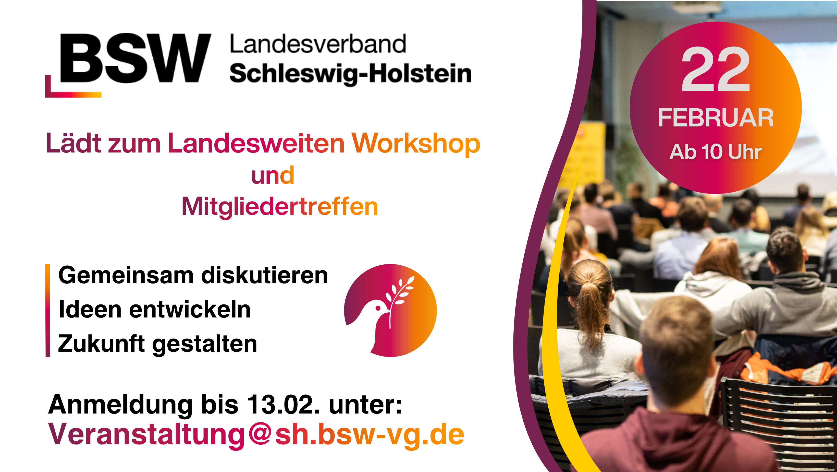 Am 18.01.2026 hat sich der Gebietsverband Kiel-Plön gegründet. In einer sachlichen und politisch entschlossenen Versammlung wurde Reza Hagsei zum Vorsitzenden gewählt, Jürgen A. Frommholz zu seinem Stellvertreter. Jannik Wickbold übernimmt das Amt des Schatzmeisters. Als Beisitzerinnen wurden Marthe Lettow und Ulrike McIntosh gewählt. Auf Antrag der JSW wurde die Position eines jugendpolitischen Sprechers für den…