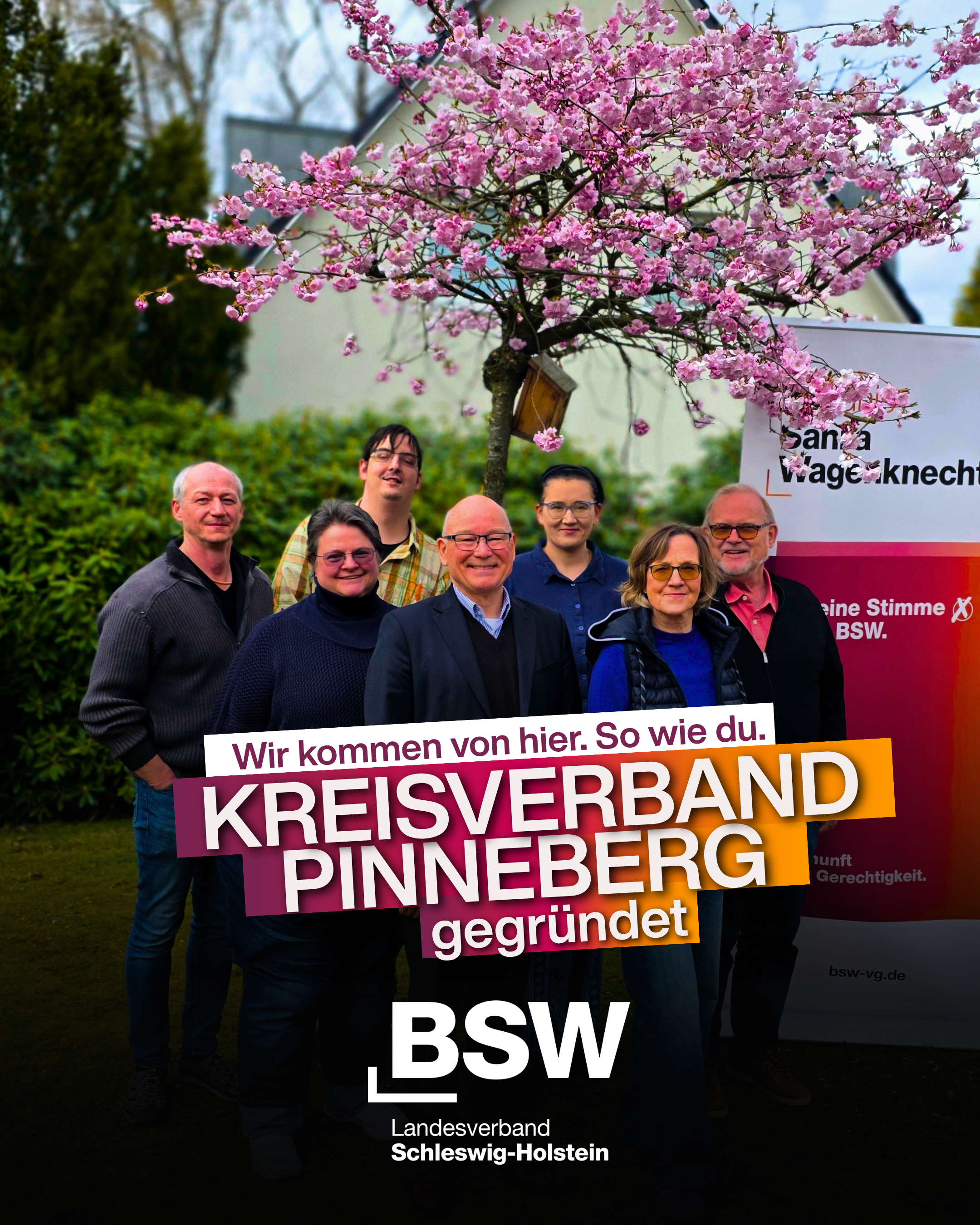 Pinneberg: Menschen wie du und ichDer Kreisverband Pinneberg des BSW ist gegründet.Zum Vorsitzenden wurde Dirk Sturmfels gewählt.Als stellvertretende Vorsitzende wurde Elisabeth Schuffert (JSW Schleswig-Holstein) gewählt.Zur Schatzmeisterin wurde Bettina Roß bestimmt.Als Beisitzer wurden Kirsten Fischer und Juan Gruben gewählt.Die Funktion des jugendpolitischen Sprechers übernimmt Eduart Schuffert (JSW Schleswig-Holstein).Der Landesvorstand gratuliert dem neuen gewählten Kreisvorstand zur Gründung…