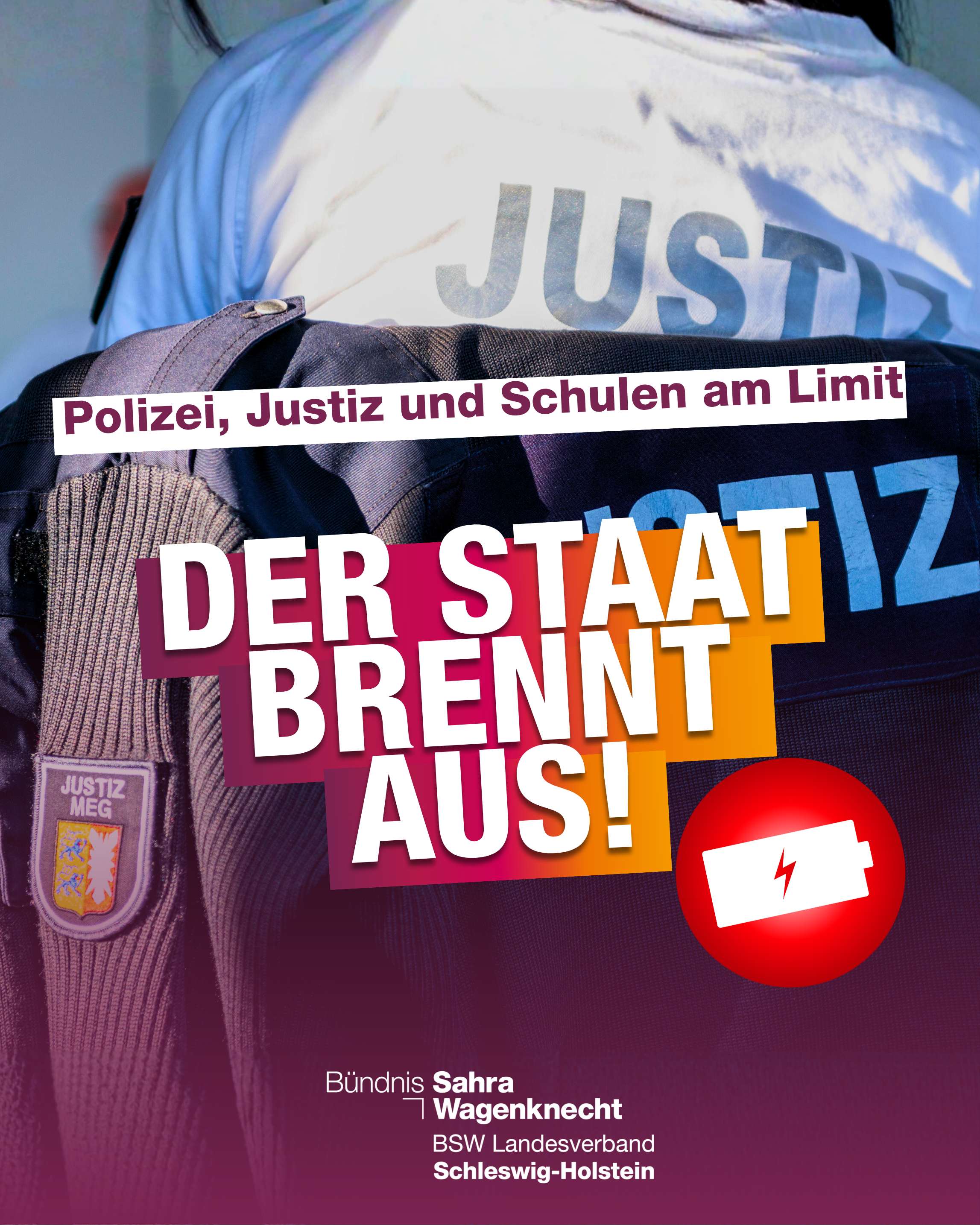 Schwarz-Grüne Sparpolitik gefährdet Sicherheit, Bildung und Gesundheit der Landesbediensteten Kiel. Das Bündnis Sahra Wagenknecht (BSW) schlägt Alarm angesichts der dramatischen Zustände in Schleswig-Holsteins Landesverwaltung.Die Schwarz-Grüne Landesregierung unter Ministerpräsident Daniel Günther und Finanzministerin Monika Schneider fährt das Land mit einer rigiden Sparpolitik an die Wand.Statt Fürsorgepflicht herrscht ein rücksichtsloser Sparhammer, der die Beschäftigten in Polizei, Justiz…